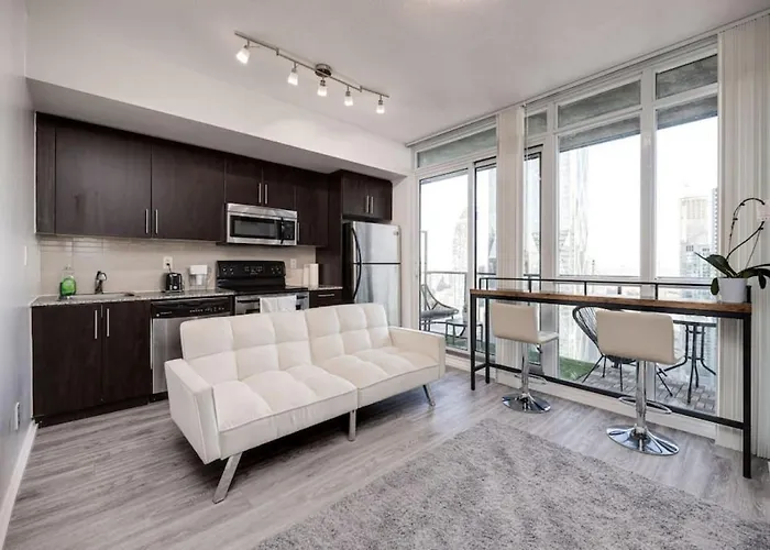 Het vakantiehuis is in de wijk Entertainment in Toronto genesteld, niet ver van het Stadhuis Toronto. Deze villa bevindt zich binnen 15 minuten te voet van de Markt van St Lawrence en op ongeveer 500 meter van het Ripley's Aquarium of Canada.